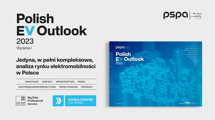 Raport PSPA wskazuje, że mimo trwających problemów z dostawami w motoryzacji, e-mobility w Polsce nie spowalnia. Według danych IBRM Samar, partnera merytorycznego „PEVO 2023”, liczba pojazdów całkowicie elektrycznych (BEV) w naszym kraju w 2022 r. wzrosła aż o 80%, w porównaniu do roku poprzedniego. Rejestracji tych samochodów wzrosło o 74%, a 12607 nowych BEV i 2783 pojazdów sprowadzanych z importu to najlepszy wynik od 2020 r. Raport „Polish EV Outlook 2023” wskazuje, że od 2014 r. udział pojazdów BEV w sprzedaży nowych pojazdów w Polsce wzrósł z 0,02% do 2,7%. Aczkolwiek jest to wciąż znacząco mniejszy odsetek niż średnia w UE, która na koniec 2022 r. wyniosła 12,1%.